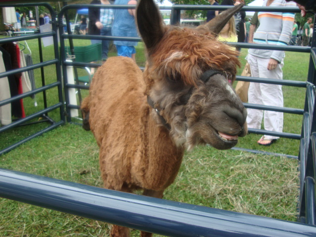 Before our visitors arrived, Adam and I set out for the farmers’ market.  We didn’t find any produce we wanted but it was basically a menagerie down there.  Here’s a llama –