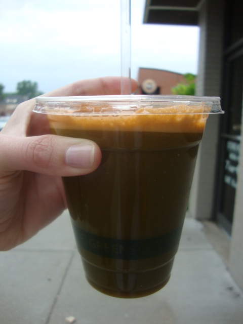 Organic 3 Cafe is great about letting you customize your juice orders.  This was spinach, carrot, cucumber, kale.