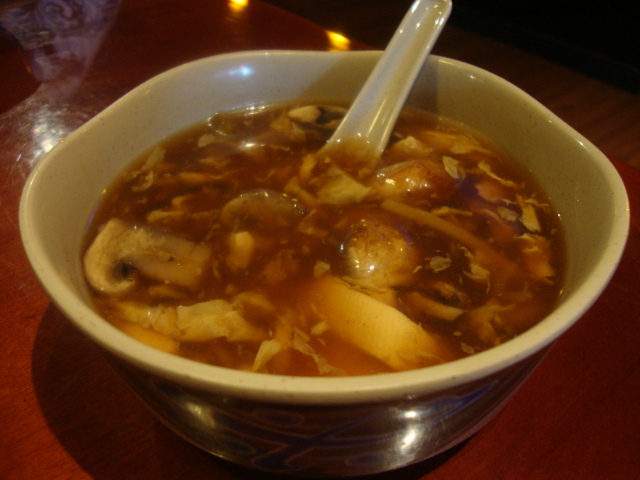 The lunch specials (only $6!) came with steamed rice and a cup of soup, I went with hot and sour.