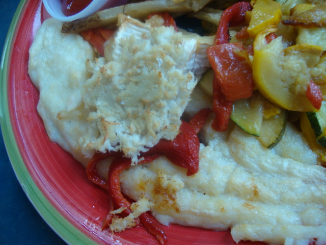 and grouper topped with crab, brie, and roasted red peppers,