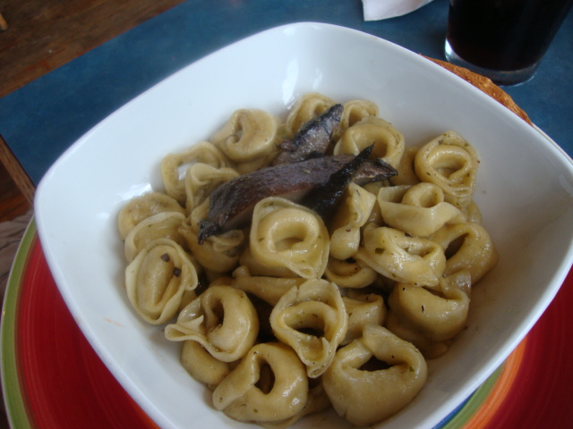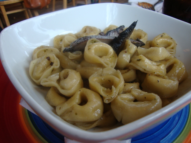 Tortellinni with portobello mushrooms and pesto,