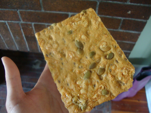 I waited too long to eat this afternoon and ended up crazy, ravenously hungry. I ate two Dr. Kracker pumpkin and cheddar flat breads.