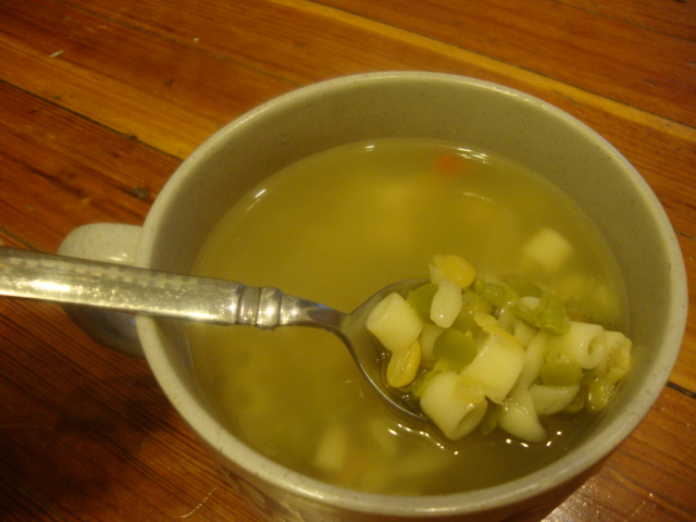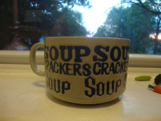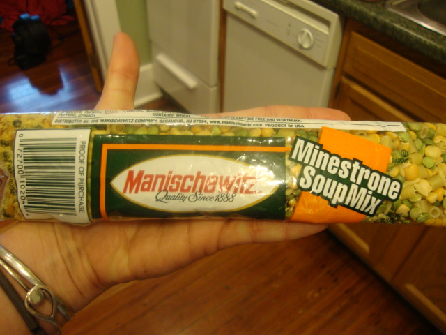 To fill my cute mug, Manischewitz minestrone.
