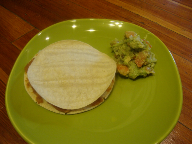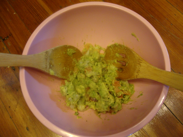 We made the guac with mashed avocado, mayan onion, tomato, and salt and pepper; it was delicious.  In fact the whole meal was great.