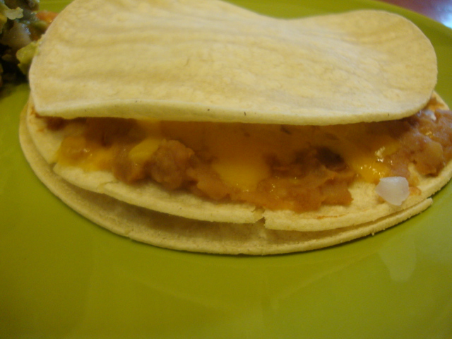 YIWC also inspires me to poke holes in all our condoms but Adam says we should have jobs before we have our own adorable baby.  I guess I’ll stick with copying dinner.  Katie’s quesadillas were triple deckers but I went with two layers with extra cheese.