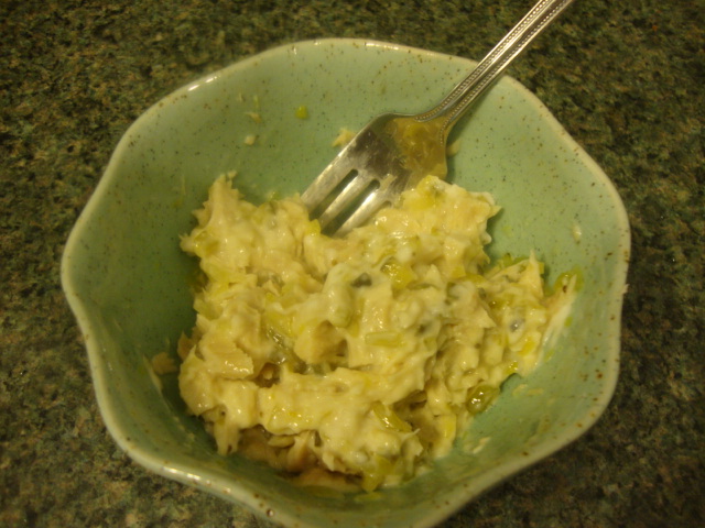 Mid-cleaning, I made myself tuna salad with half a can of solid white albacore, pickle relish, and Miracle Whip.