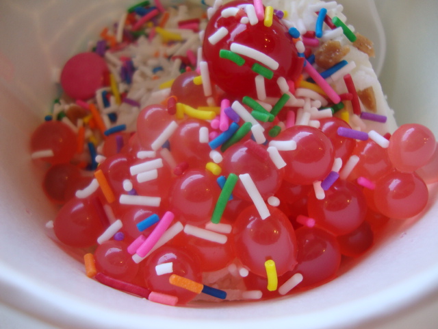 I wish I could remember the exact name of the bobba but it was something like “popping bobba” and it was maybe the most exciting thing I’ve ever eaten.  Sort of like big, soft pop rocks?
