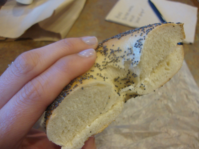 I also split a poppy seed bagel with cream cheese with my dad.