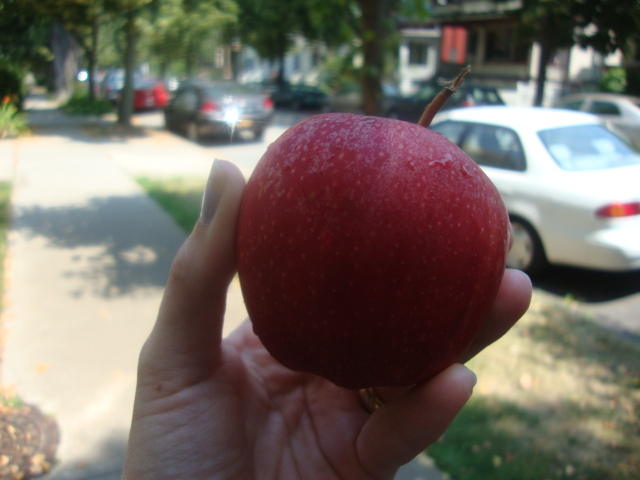 I ate an apple en route to our main activity for the day,