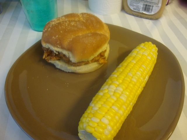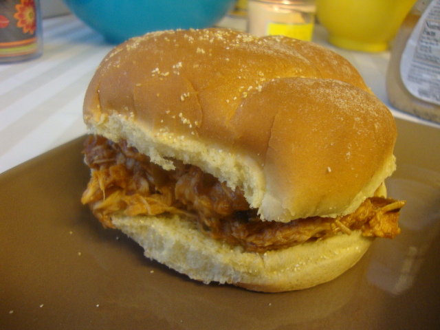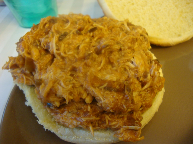 but headed home for food since dinner was already in the crock-pot. I made my parents pulled chicken with my 1000 Island BBQ Sauce,