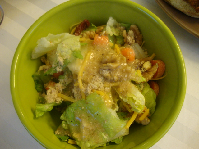 I topped my side salad with Newman’s Own Lite Caesar dressing and wheat germ.