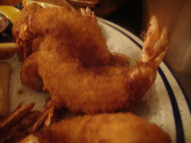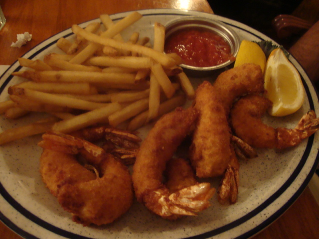 For dinner my dad and I split the two best things on the menu: Fried shrimp,