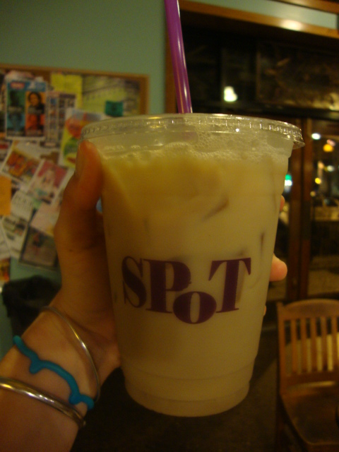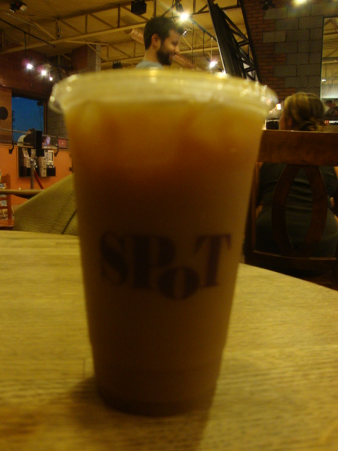 We sat outside of The Spot to eat our ice cream and I also drank a small, non-fat, iced Chai.