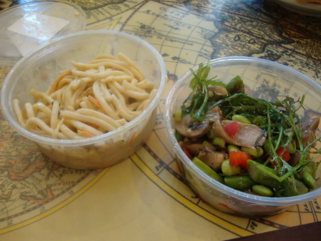 1/4 lb each peanut noodles and Thai vegetable salad.