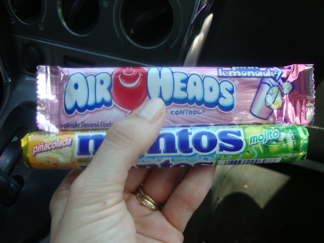 Whether due to hunger or exhaustion or increased physical activity, hunger hit me hard this afternoon. We ran a bunch of random errands and during that time Adam and I split some new flavors of candy,