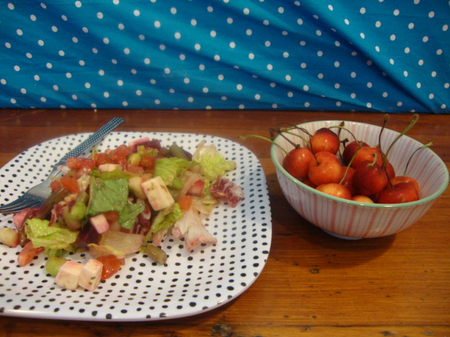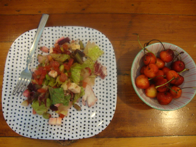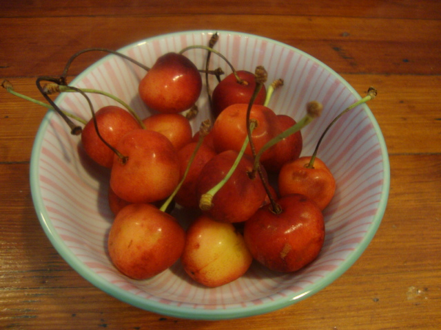 On the side I enjoyed some local cherries in a new birthday gift bowl.