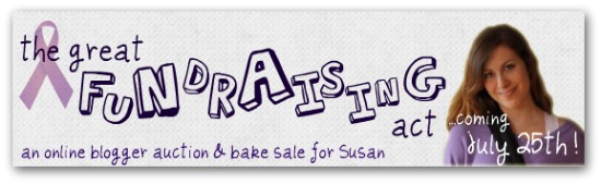I know yesterday was an important day (my 26th birthday, ha) but today’s date was the one starred on my calendar. It’s time for the bidding to begin on The Great Fundraising Act. If you haven’t heard, TGFA was started by Janetha at Meals and Moves to help raise money for Susan, a fellow blogger, who was diagnosed with Hodgkin’s Lymphoma. It’s an amazing cause, set up for one awesome blogger by another, and there are lots of great deals available. Please head over to the live auction today to check it out.