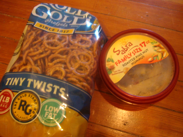 Sabra Roasted Pine Nut Hummus with Pretzels.