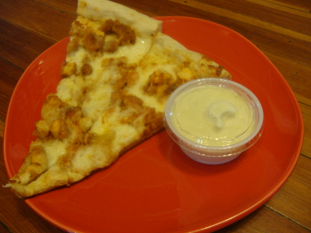 and a buffalo chicken slice from Zettis.