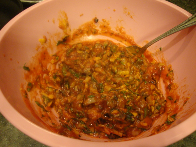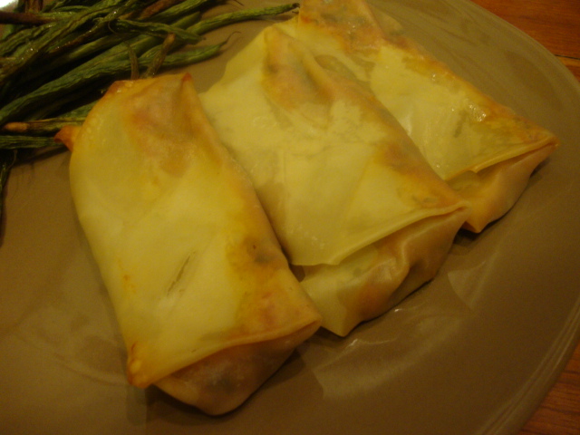Kristen wrote another recipe winner!  For our filling we chopped together spinach, mushrooms, extra sharp cheddar, black olives, and marinara sauce.