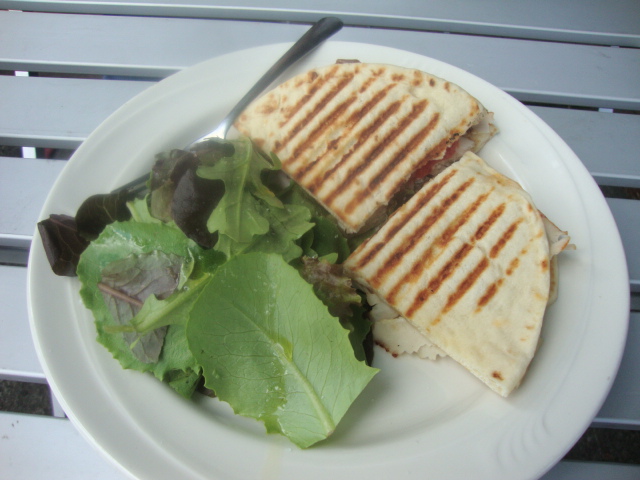 I usually forget to add it at home but there was salt on my salad and that definitely elevated it. My sandwich was good too, nice and melty. My stomach was feeling funny though (I think from being so tired!) so I ate exactly half and brought the rest home to Adam.
