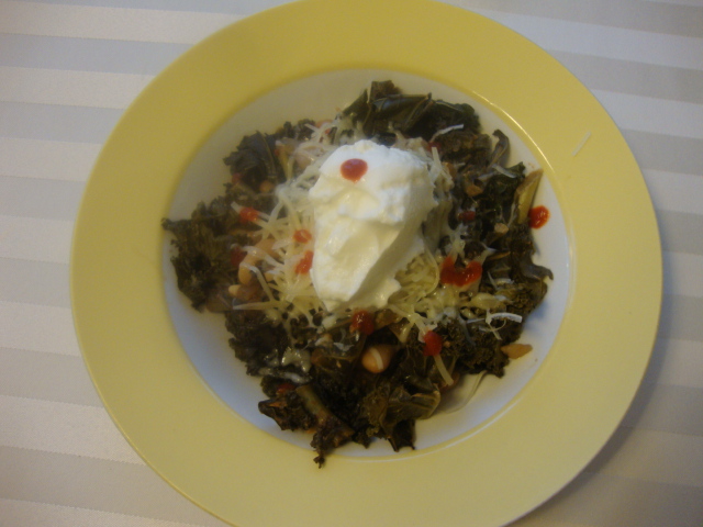Such a good plan! I topped my serving with shredded Parmesan, more Sriracha, and a dollop of 0% Plain Fage.