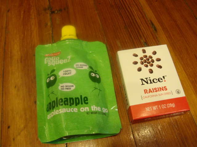 Plus a GoGo Squeeze applesauce packet and a packet of raisins.