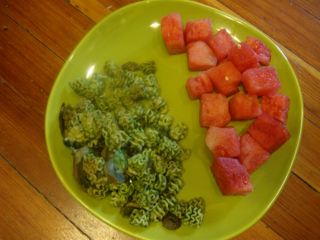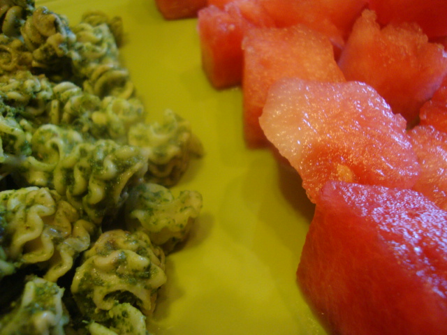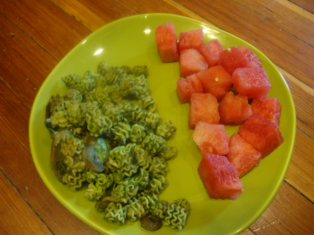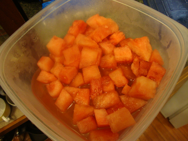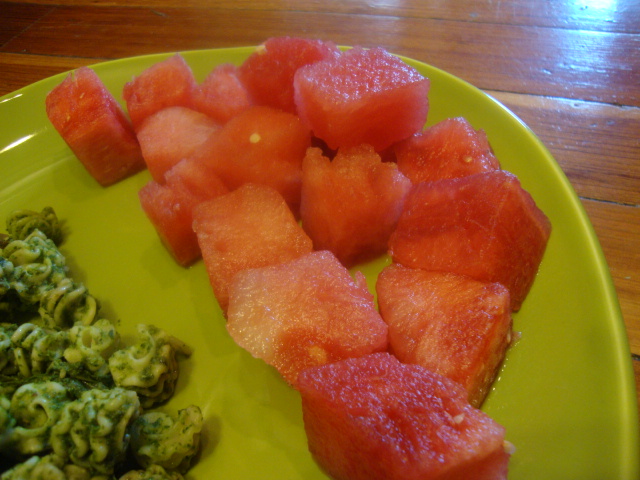 I was starving when I got home and dinner took for-ev-a so I ate a few snacks while I cooked. Watermelon chunks stolen straight from the big container.