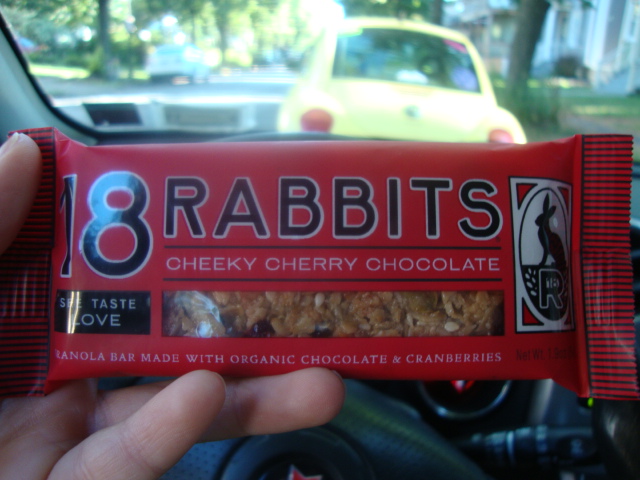 I also got to eat breakfast in the car, in the form of an 18 Rabbits Cheeky Cherry Chocolate Granola Bar.