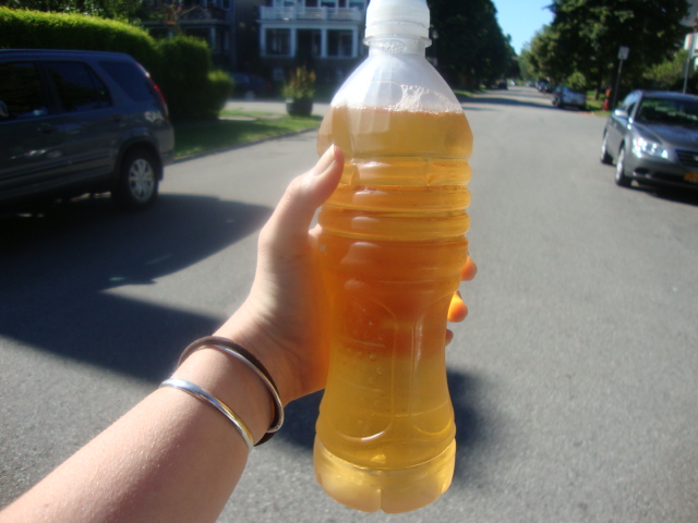 On the way home I stopped at the gym to complete a workout session for the study I’m participating in. We fuel with three different drinks and then walk on the treadmill for and hour at our heart rate range and take some notes on exertion levels. Today I fueled with this 24 oz mystery beverage that I believe was water and apple juice.