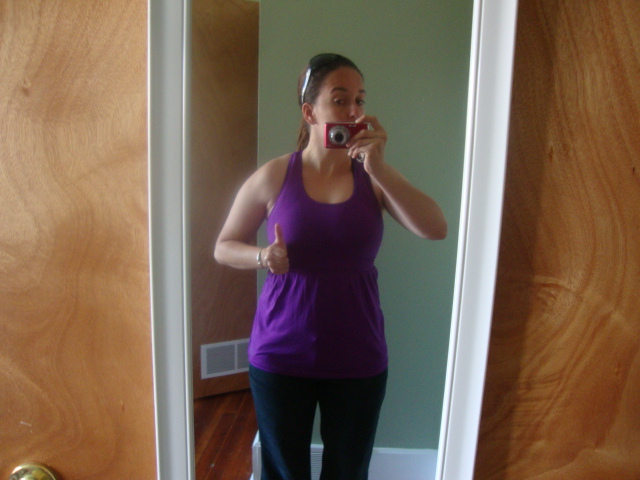 After lunch I headed back to the gym for my real workout: a running session on the treadmill. It was pretty hard (being fat isn’t fun!) but I made myself stick to the same goal as Sunday of minimum 5 minutes running, maximum 2 minutes walking. I did 4 miles in 42 minutes, 22 seconds. Seven miles in one day probably wasn’t my best idea though, my back is killing me.