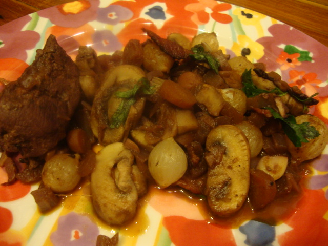 1.5 hours later – seriously – it was time for dinner. I made Coq au Vin!