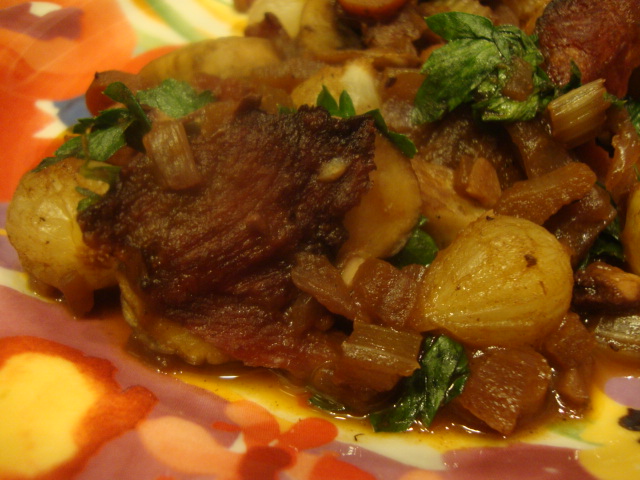Casey (who I had an obsessive girl crush on) made this during Top Chef and I’ve wanted to try it ever since. I used Cooking Light’s Easy Coq au Vin recipe and my only changes were subbing in turkey bacon and using chicken breast instead of thighs and drums.