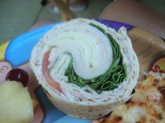 part of a turkey sandwich with l, t, m, and c (mayo and cheese),