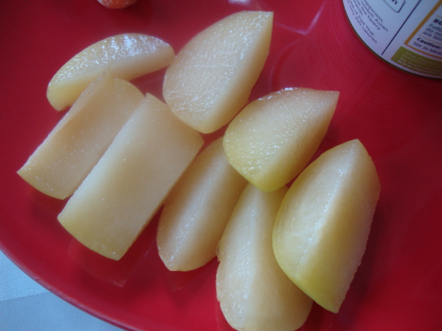 and a sliced yellow plucot.