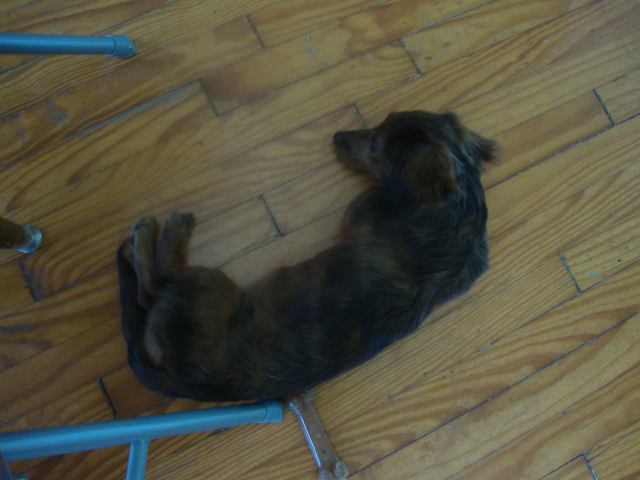 He is such a good walker! If he would just stop ripping up the pee pads we’d be in business. The two of us made a .66 mile loop around Elmwood. I’m not sure I’ll take him on many more mid-day walks, he was hot, hot, hot. I walked barefoot for a bit to make sure his feet were ok but when I picked him up to carry the last few blocks he was like a little oven!