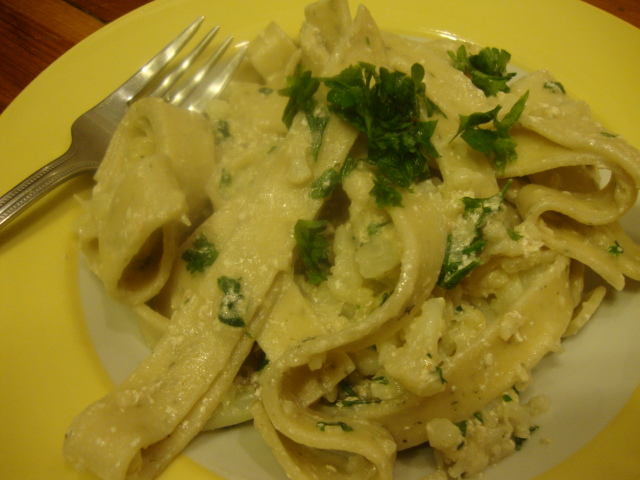 - using 10 ounces of locally made garlic parsley tagliatelle