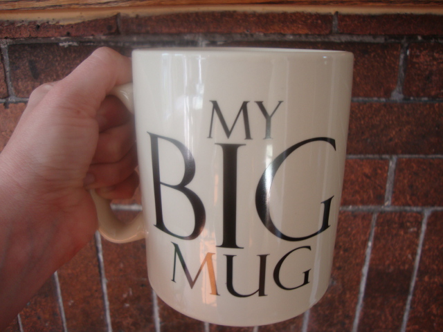 Into my big mug (thanks Janetha!) went 2.5 cups of coffee, 2 Tbsp English Toffee syrup, and a big pour (~3/4 cup?) of Silk Plain Almond Milk.