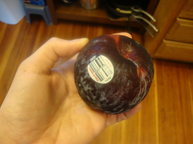 Adam offered to help me hobble through the grocery store so I did a quick-lunch out of hand. A black plum,