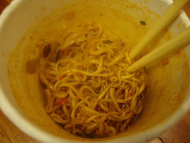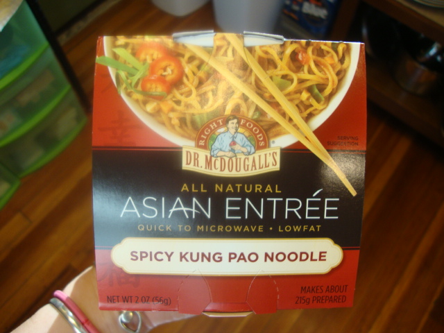 We did Wegmans and the co-op and when I got home I hungrily dug into this container of Dr. McDougall’s Spicy Kung Pow Noodles.