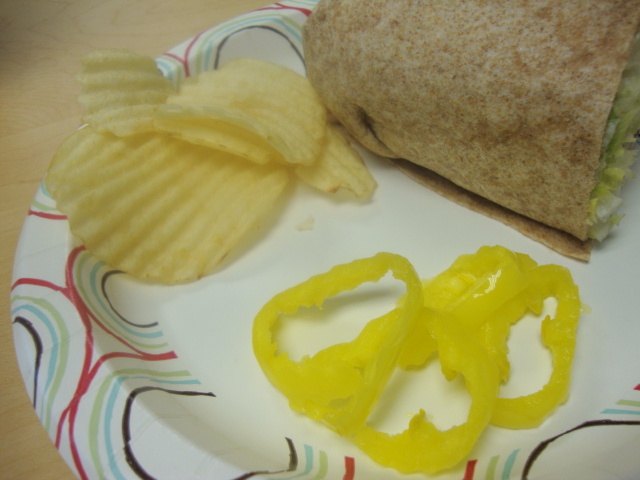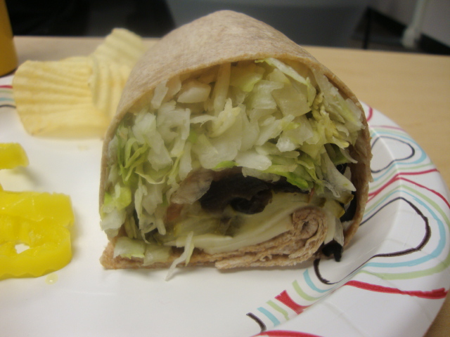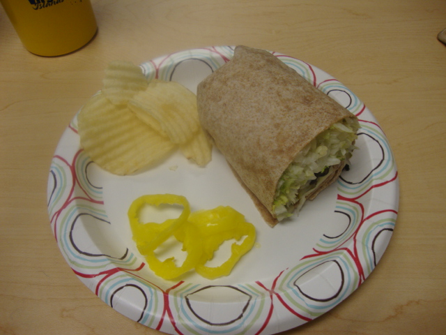 I grabbed a veggie wrap (lettuce, tomato, pickle, cheese),