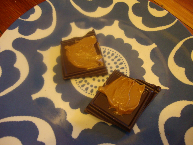 Plus 100 calories worth of Ghirardelli Midnight Reverie 86% chocolate topped with a smear of Biscoff spread.