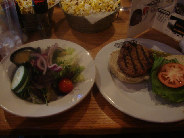 Ready on time, we set off to Pearl Street Grill and Brewery for dinner before the show.  Thankfully, Adam got out early enough to meet us for dinner so we did a little sharing.  I ordered the Gobbler (turkey burger) with a side salad subbed instead of fries for veg.