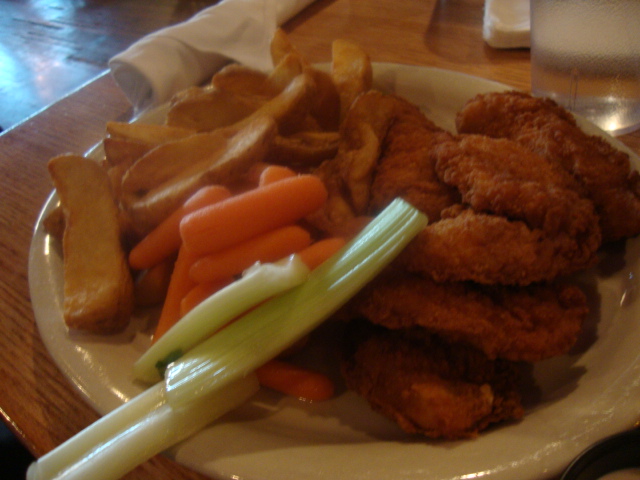 I was not expecting such a large plate of greens though!  In the end I ate ~ 1/3 of the husband’s chicken fingers and fries,