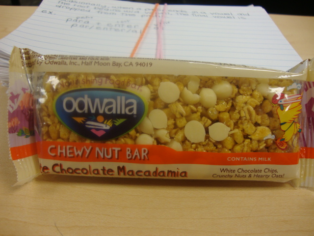 Before the test I ate this White Chocolate Macadamia Chewy Nut Bar Odwalla sent me to sample.