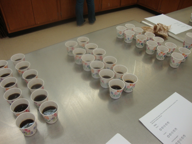 I had time for a quick break and then it was on to class #2 and a group presentation.  Our non-nutritive sweeteners group had to present our findings from the last test lab as well as information on the options available to our future clients.  We were the very first group to go which was a little nerve-wracking but the TA said we did a good job.  We also did our 2nd set of sampling today, this time with commercially made products.