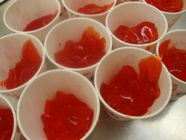 The class had to analyze original and sugar-free versions of cola, yogurt, ice-cream, jell-o, and chocolate syrup.  Normally we can just take small tastes in lab but since I’ll have to write up a report for this one I needed to take really good notes which meant eating all of the samples, even the nasty ones.  And most of them were nasty.  <– Word to the wise – don’t even waste your time with Hershey’s sugar-free chocolate syrup, yuck city.
