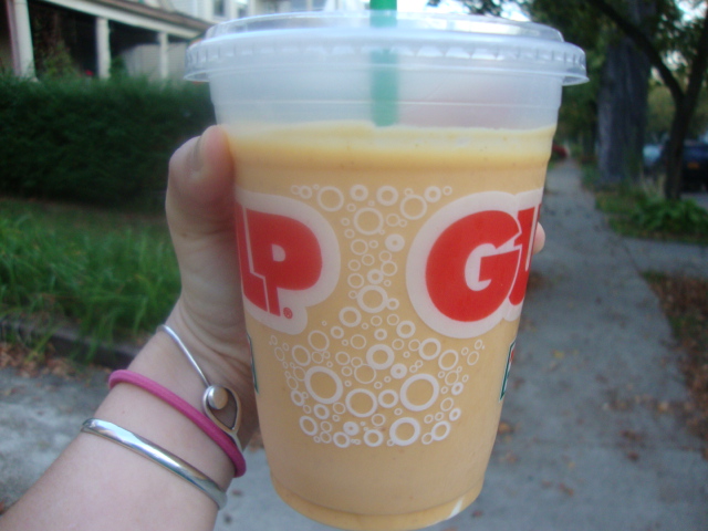 They’re back!  Pumpkin smoothies are one of my favorite things about October; they just don’t feel right during other months.  They are squash-y and just a bit sweet and the texture is more pudding than smoothie which makes them all the more fabulous.