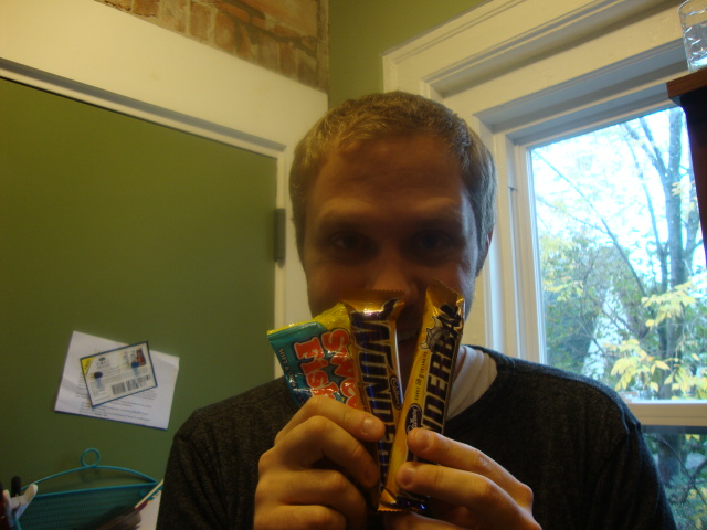 I woke Adam up with candy on his pillow.