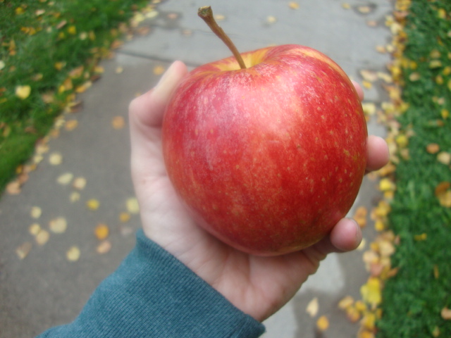 He didn’t get me anything (in spite of a few pointed comments about the upcoming holiday!) but he did accompany me in blustery weather for a walk to the co-op. And we shared an apple like sweethearts.